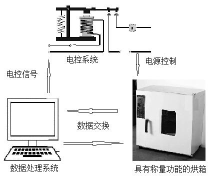 据上文分析,称量技术和干燥时长是实验室水分检测误差的主要影响因素。本文借鉴上述智能烘箱的研究理念,提出一种基于传统烘箱的改造方案,如图1所示。经过智能化改造的烘箱由三部分组成,即:具有称量功能的烘箱、烘箱电控系统、烘箱数据处理系统。通电后,具有称量功能的烘箱会将数据通过数据采集传送到数据处理系统中,随着烘箱的升温和样品的干燥,数据处理系统会自动绘制样品质量和时间的曲线,严格按照各种现行标准规定要求,数据处理系统会自动判断样品是否恒重。如果样品没有恒重,烘箱继续工作;如果样品已经符合恒重要求,系统会自动计算出水分值,将数据存储,同时发出停止实验的指令。智能烘箱电控系统收到停止实验指令后,自动关闭烘箱电源,停止数据采集,烘箱处于冷却状态,系统处于待机状态。该方案区别于可编程逻辑控制器(PLC)模块应用和比例-积分-微分控制器(PID)智能控制技术[11]应用,而是采用了计算机自带的数字算法控制电磁继电器实现烘箱智能加热、称量、停机,结构简单可靠。经组装测试,依照该方案智能化改造的烘箱具有以下特点;能够利用原有设备进行改造,改造成本低,易于推广;能够很大程度上减少人为因素干扰,全程系统自动运行,中间没有间歇,数据自动存储,报告自动生成;能够保证数据精准,一样品一烘箱,全过程自动称量,自动判断实验终点,既能贴合恒重的工作要求,又能避免手工称量的误差引入,能够保证数据的准确性;烘箱系统的数字算法能够有效缩短实验时间,大幅度提高工作效率,节约能源;系统能够实现第一时间发现实验终点,第一时间结束,避免时间浪费,让烘箱最早进入冷却状态,为下一次进样做好准备,使实验连续高效运行;同时该烘箱的设计能保证实验安全,全程无中断能够避免样品遗洒,能够有效避免热称量可能导致的人员烫伤和设备损伤。