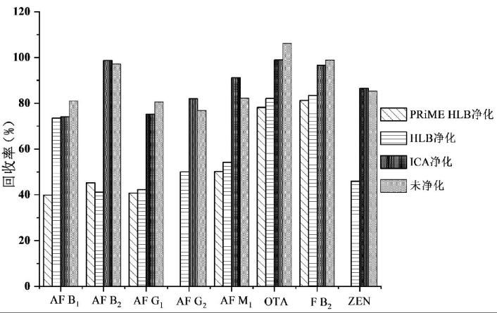 图3 SPE净化过程对真菌毒素的回收率的影响