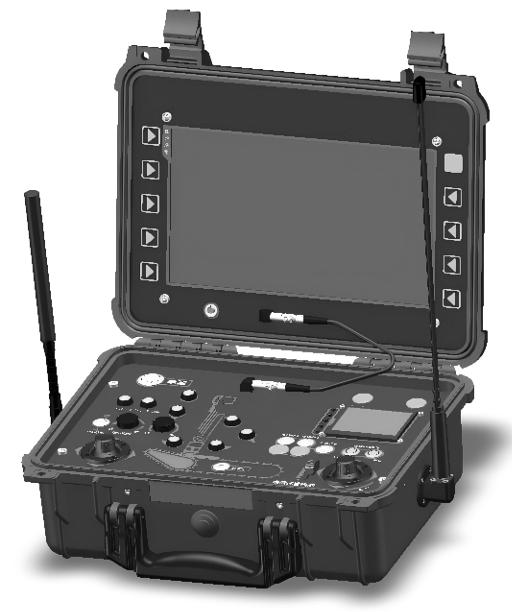 图2所示的是操控箱控制器,图中上半部分(箱盖部分)的显示屏高清显示摄像头拍摄的视频内容,下半部分是控制机器人的操控面板。