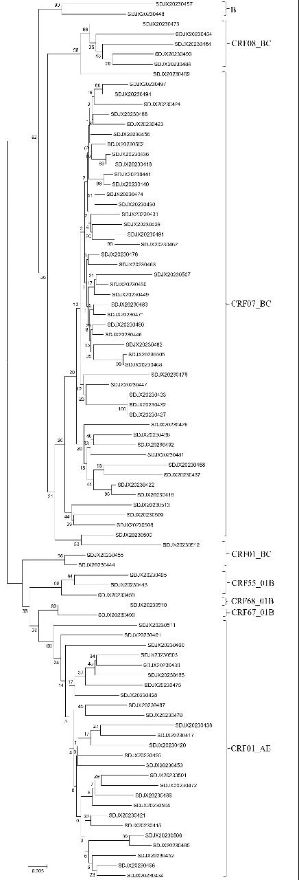 79 2023年济宁市HIV-1新发感染者病毒基因特征及耐药分析
