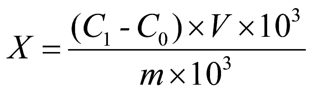式(1)中,X为试样中双酚A的含量,mg/kg;C1为从标准曲线上得到的试样双酚A浓度,mg/L;C0为从标准曲线上得到的空白试样双酚A浓度,mg/L;V为试样定容的体积,mL;m为试样的质量,g;103为换算系数。计算结果保留两位有效数字。
