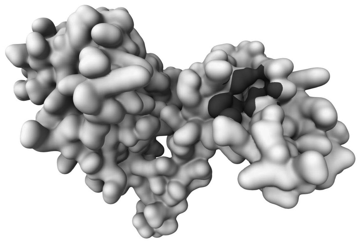 利用HelixFold3软件构建NS1的三级结构,如图8所示。利用PrankWeb软件分析NS1三级结构配体结合位点,结果显示NS1的C13、WH16-17、Q40、LR43-44、IE54-55、T58位氨基酸是配体结合位点,如图9所示。