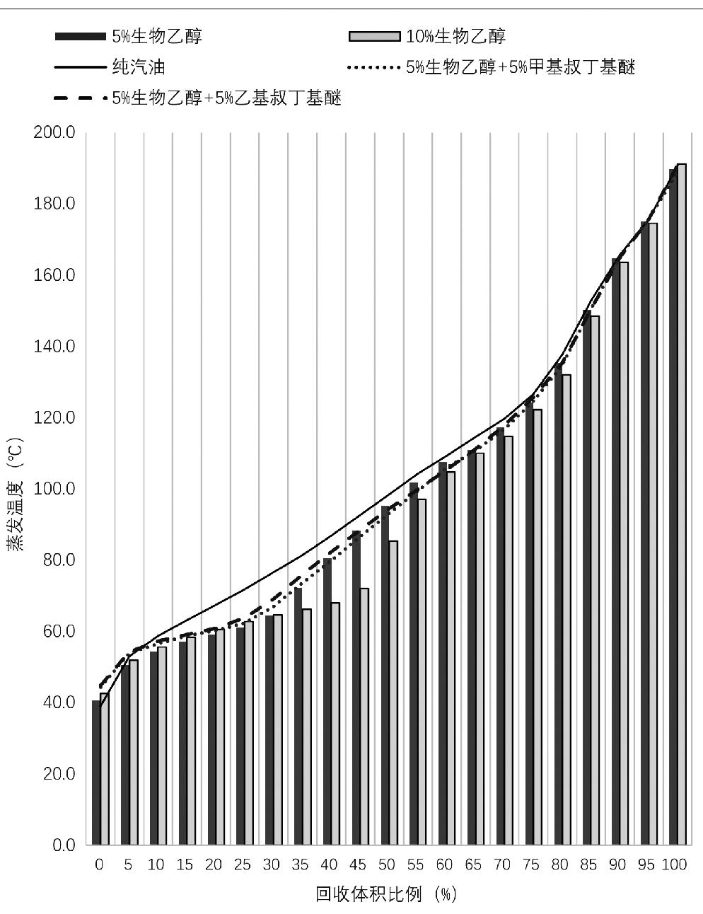 图6 含有醚的生物乙醇汽油的蒸馏曲线
