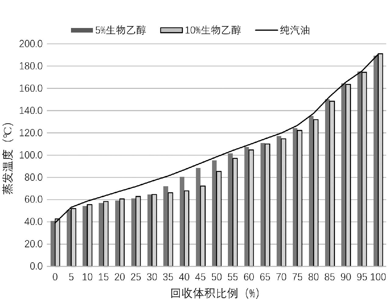 图1 生物乙醇汽油的蒸馏曲线