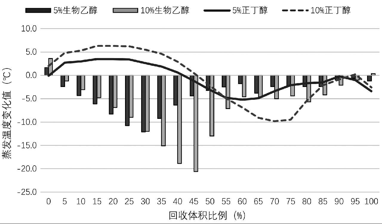 4.4 生物乙醇和生物丁醇与汽油混合后的蒸馏温度变化