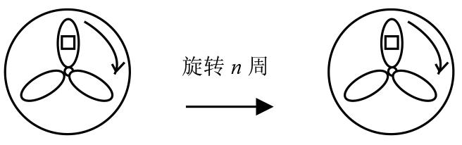 在实际测试时可以根据被测样品大致的转速范围设置一个初始的频闪频率。如果在这个频率下,测试人员在频闪仪连续2次闪光时观察到的图像如图2所示,即测试人员感觉到被测样品的图像在向与样品实际旋转方向相反的方向旋转,此时可以认为在频闪仪2次闪光的时间间隔内被测样品尚未有足够的时间转过n周,即频闪仪连续2次闪光的时间间隔略短于被测样品转过n周所需的时间。此时测试人员可以适当降低频闪仪的频闪频率,使频闪仪连续2次闪光的时间间隔适当延长,以便使被测样品有充足的时间转过n周。这样调节通常可以较快地得到与图1相同的图像。