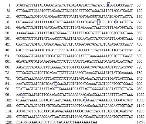 图9 Gap目的基因ORF编码区域与PG-8A菌株比对的突变位点