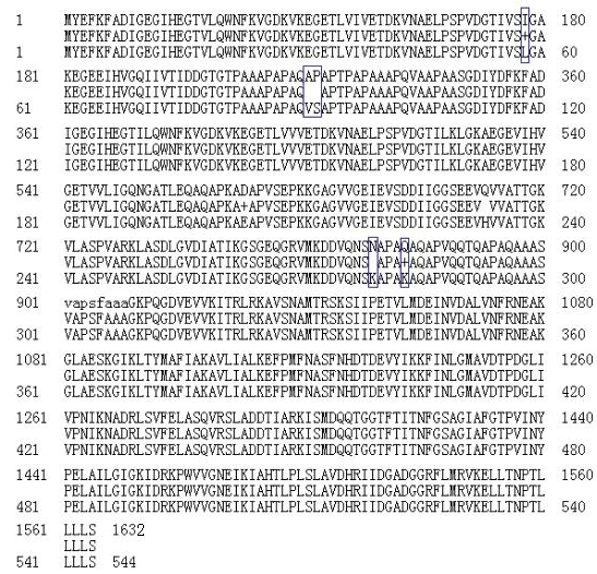 图10 Gap基因编码氨基酸序列与PG-8A菌株比对的突变位点