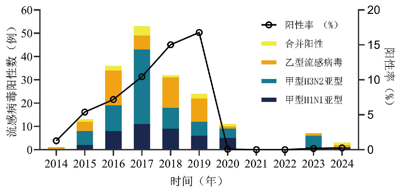 表1 2014—2024年吉林口岸流感样病例流感病毒检出情况
