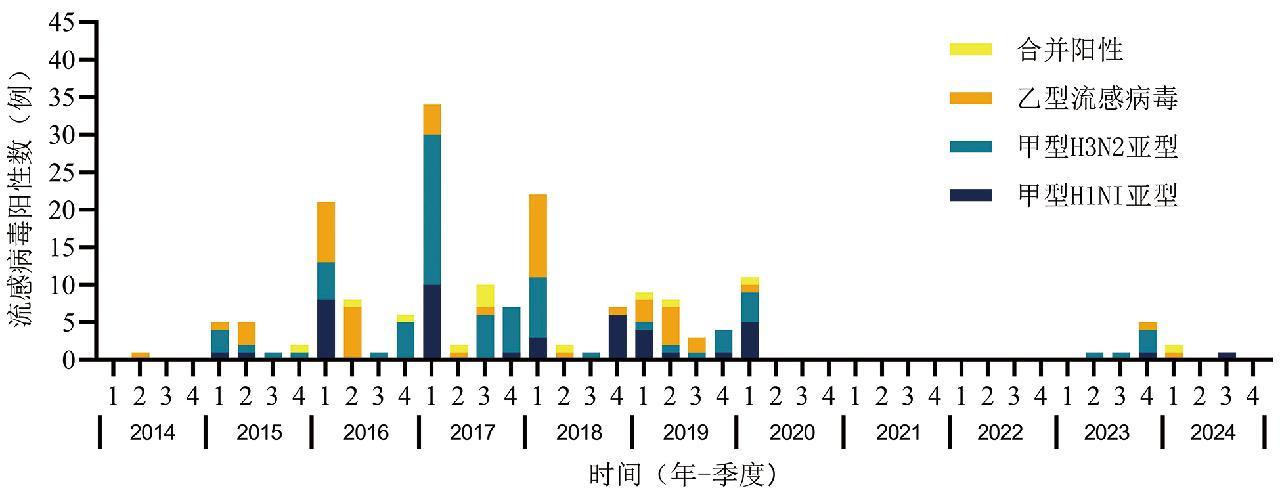 图2 2014—2024年吉林口岸流感病毒阳性病例各季度分布