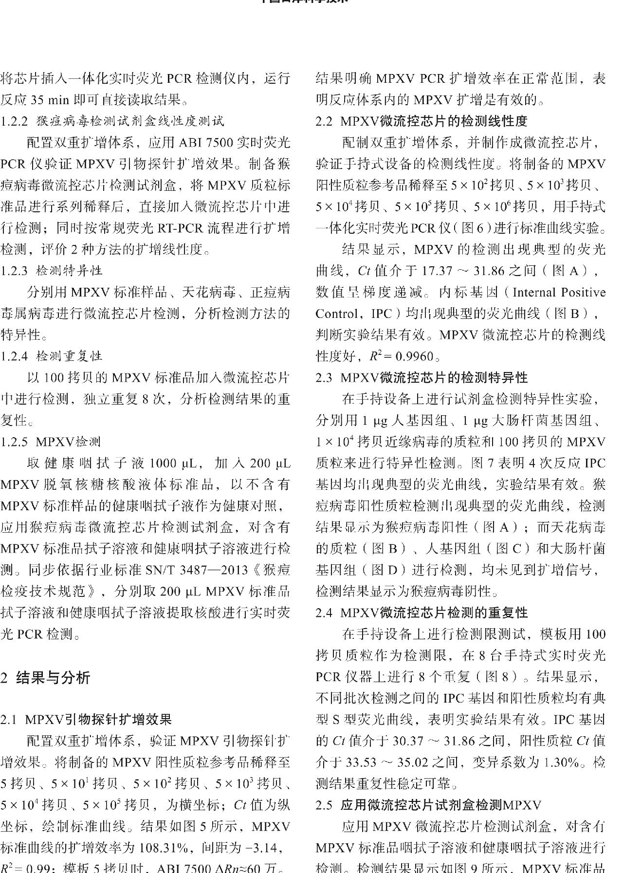 关键词 猴痘病毒;微流控芯片;荧光RT-PCR;快速检测