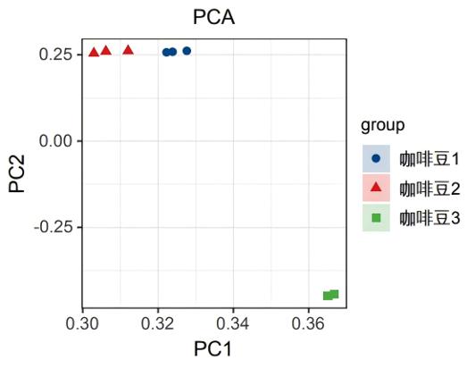 图5 3种咖啡豆样品PCA分析图