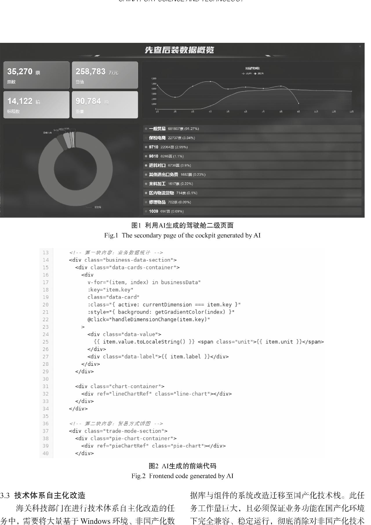 在准确性与可靠性方面,AI辅助编码对复杂业务逻辑和多步骤推理的理解仍然有限,生成的代码通常需要多次迭代优化。实践表明,在海关信息化应用场景中,AI技术目前更适用于业务逻辑相对简单的功能模块开发,例如表单的增删改查、单一条件查询等,这类场景中AI可有效提升基础编码效率。然而,面对涉及多规则判断、流程状态协同或动态策略调整的复杂业务,如通关流程中多份单证的联动检查与核销、关税参数的灵活计算与调整等,现有AI编码技术的适用性仍显不足,其生成代码的准确性与业务吻合度有待进一步提高。实际应用数据显示,AI首次生成代码的准确率约为20%,虽经多轮引导后可提升至70%,但仍需结合人工审核与修正以确保最终质量。在安全与隐私方面,AI处理代码数据时仍存在敏感信息及代码安全风险,需通过数据脱敏、访问控制与代码审计等措施加强防护[9]。在模型训练与迭代方面,系统面临高质量业务标注数据稀缺与训练算力成本高的双重挑战,未来可通过构建多源数据融合机制、依托分布式与云化算力降低开销,并结合增量学习与严格测试体系,实现模型效果的平稳持续优化。