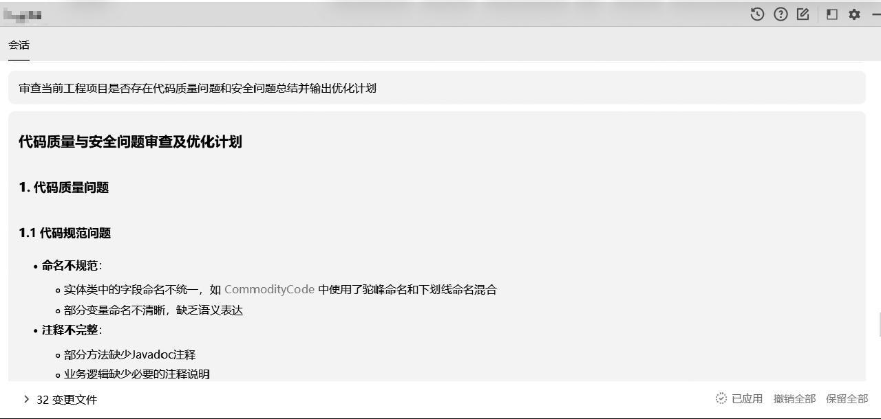 结合需求文档、既有的开发规范和经典实践,AI可生成项目的基础结构、目录组织、通用配置文件及核心模块接口,帮助开发人员快速进入编码阶段,减少重复性搭建工作,适用于CRUD的简单业务场景。