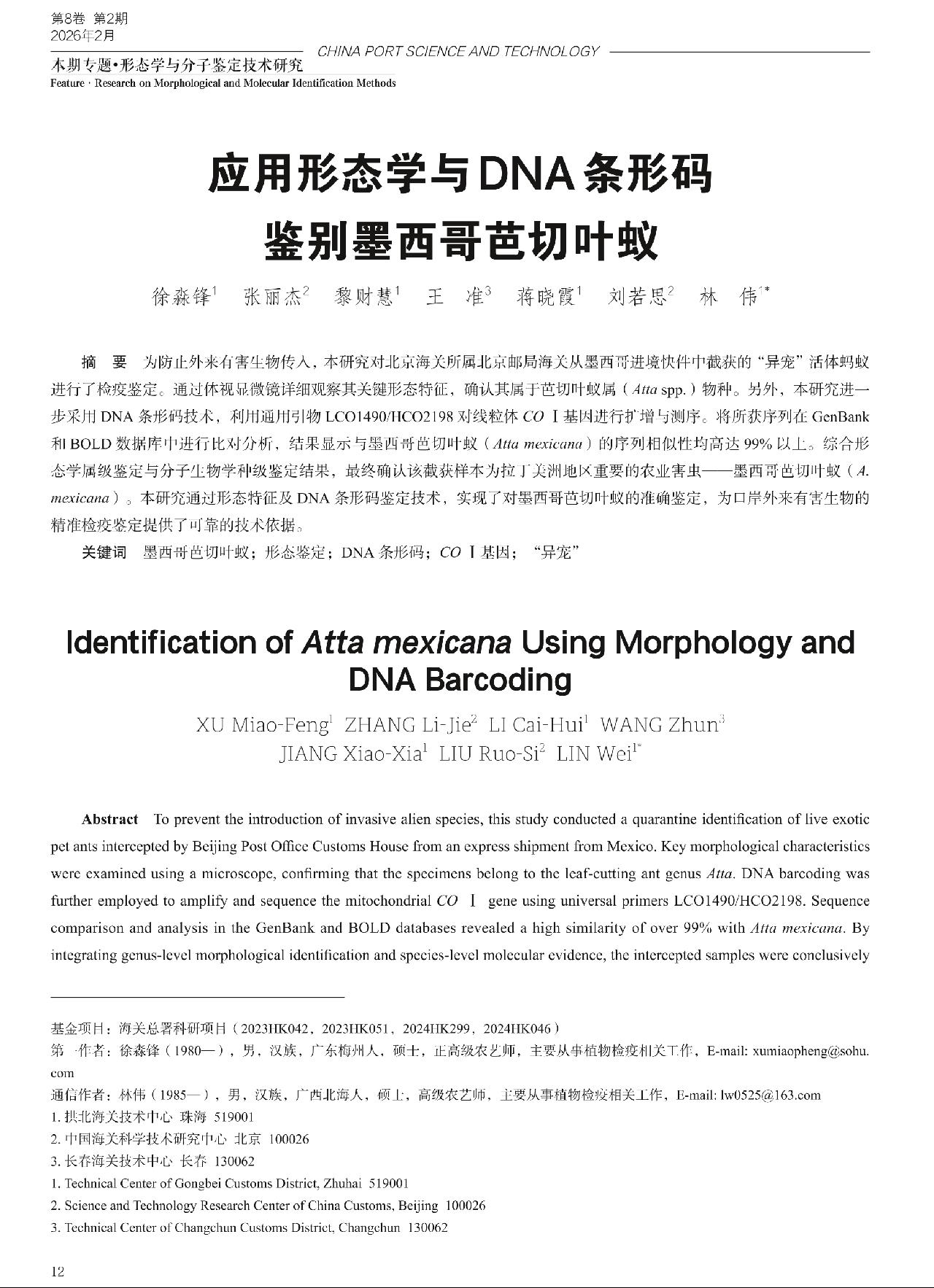Keywords Atta mexicana; morphological identification; DNA barcoding; COⅠgene; exotic pet