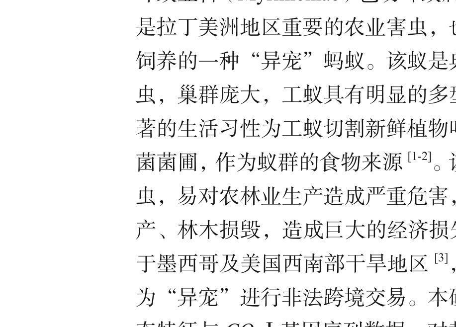 关键词 墨西哥芭切叶蚁;形态鉴定;DNA条形码;COⅠ基因;“异宠”
